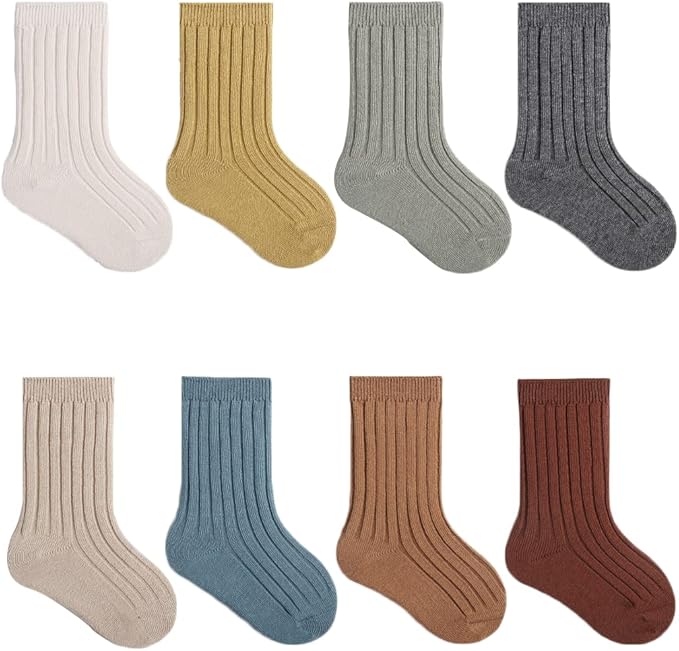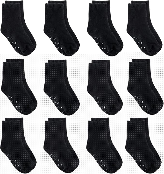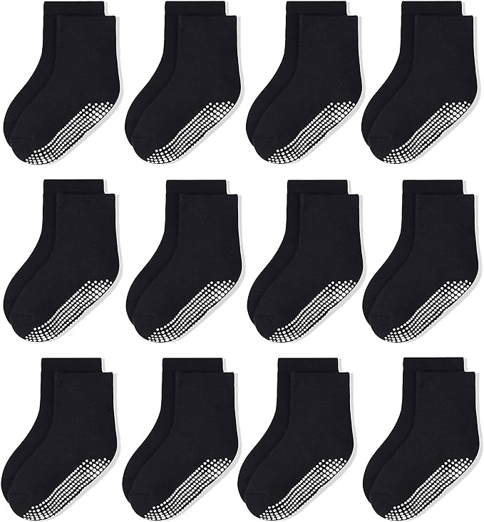 12 Pairs Non Slip Toddler Socks Crew Socks with Grips for Baby Boys Girls