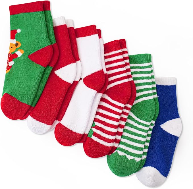 Kids Christmas Socks 6 Pairs Cozy Cotton Comfortable for Boys Girls Toddlers Youth Festive Xmas Stockings