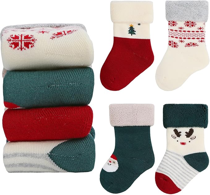 Baby Christmas socks 4 Pack 3-6 -12-18-24 months for boy girl babies Infant cotton fuzzy sock Gifts
