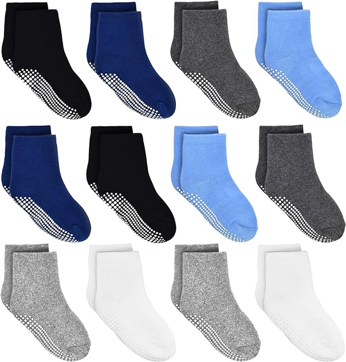 Kids Non Slip Toddler Boy Grip Socks 12 Pairs Anti Skid Sticky Socks for 1-10 Years Infants Baby Children