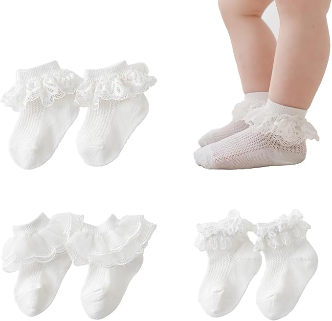 Baby Girls Double Lace Socks,Cute Ruffle Princess Frilly Cotton Dress Ankle Socks for Infant Toddlers and Kids