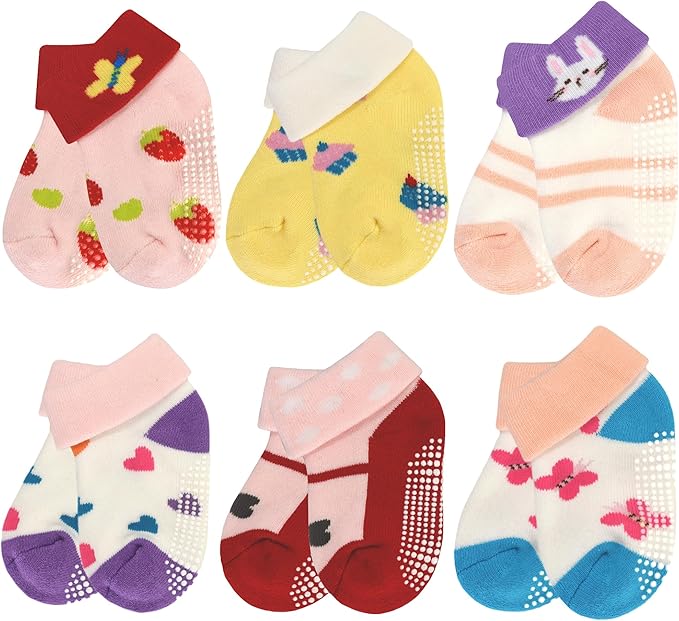 Baby Toddle Socks Grip Non Slip Boys Girls Cotton Socks 12 Pack for Kids Ankle Cute Socks 6M-7Years
