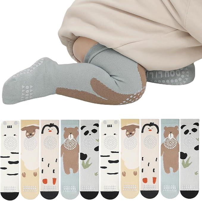 Toddler Animal Non Skid Crew Socks with Grips Baby Infant Boy Girl Non Slip Cotton Socks 6 Pairs