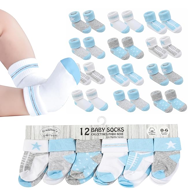 Baby Socks 0-6 Months - 12 Pairs, Organic Cotton Infant Socks, Unisex, Soft & Hypoallergenic Newborn Socks, (US, Age, 0 Months,