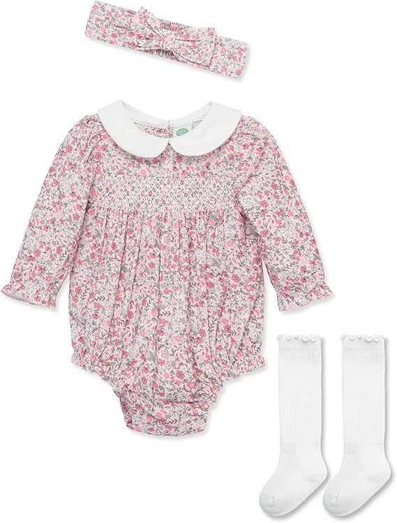 Clothes for Baby Girls' Bubble Romper, Headband, and Socks Set, 3 Months - 12 Months