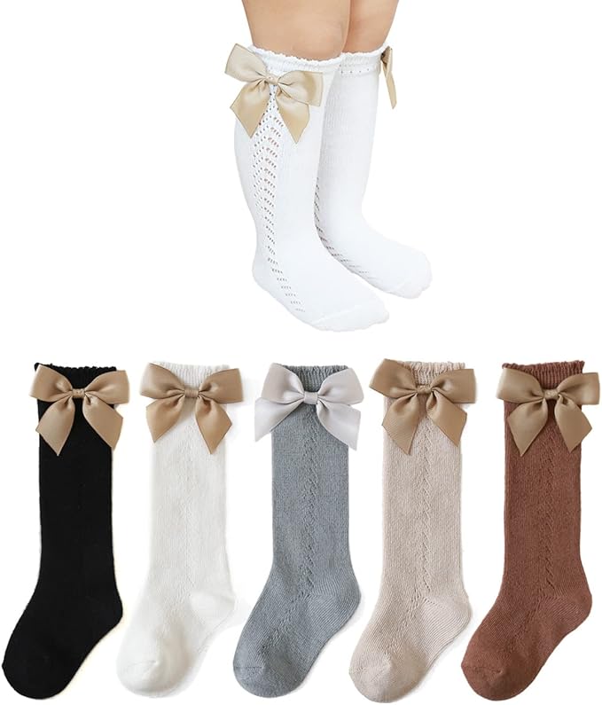 Baby Girls Knee High Socks Baby Girls Bow Stockings Cotton Uniform Stockings Dress Socks 5 Pack,0-5T