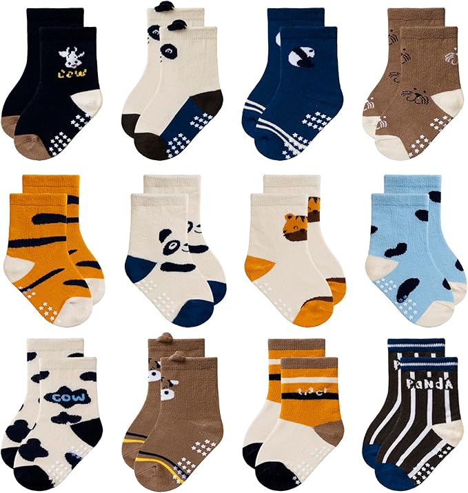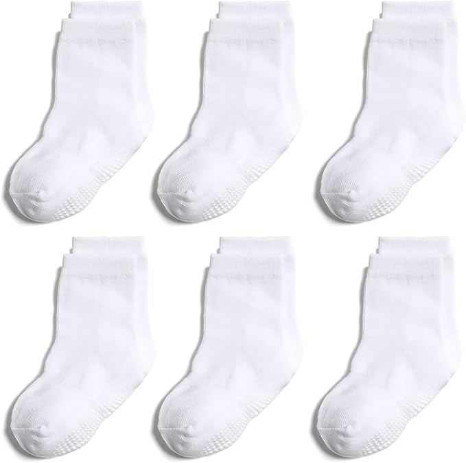 12 Pack Baby Socks Cotton Crew Toddler Socks Grips Non Slip Bottom Kids Socks